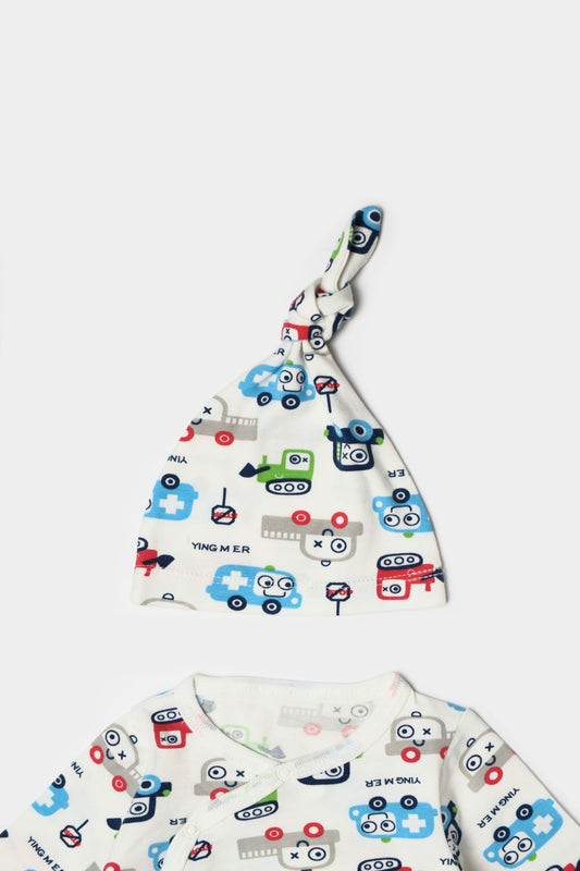 %100 Pamuk 5'li Organik Bebek Hastane Çıkışı Ekru Arabalı