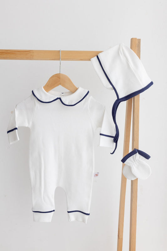 Bonet Şapkalı 3'lü Pamuklu Tulum Seti