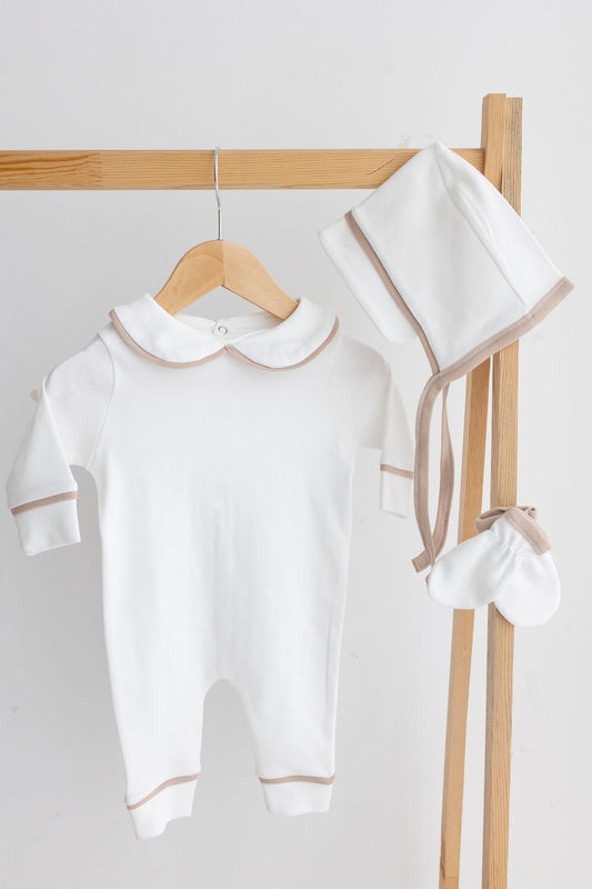 Bonet Şapkalı 3'lü Pamuklu Tulum Seti