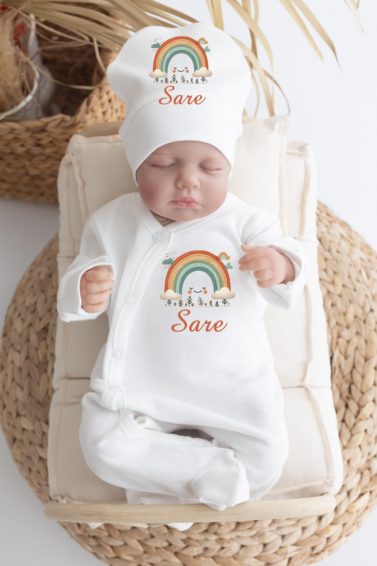 İsime Özel %100 Pamuk Baskılı 11’li Organik Bebek Hastane Çıkışı Mutlu Gökkuşağı Modeli M74