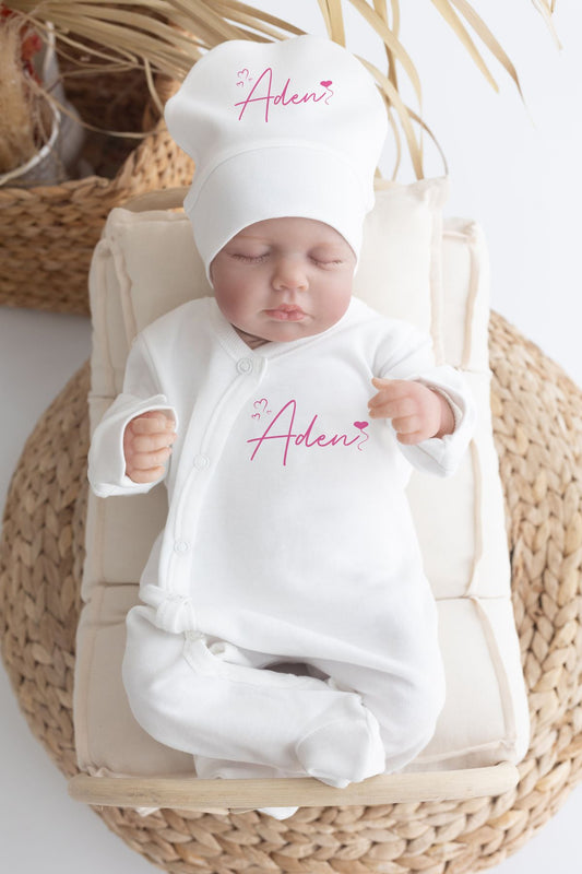 İsime Özel Pamuk Baskılı 11'li Organik Bebek Hastane Çıkışı Ecrin Sena Modeli