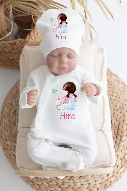 İsime Özel %100 Pamuk Baskılı 11’li Organik Bebek Hastane Çıkışı Arkası Dönük Kız Modeli M77