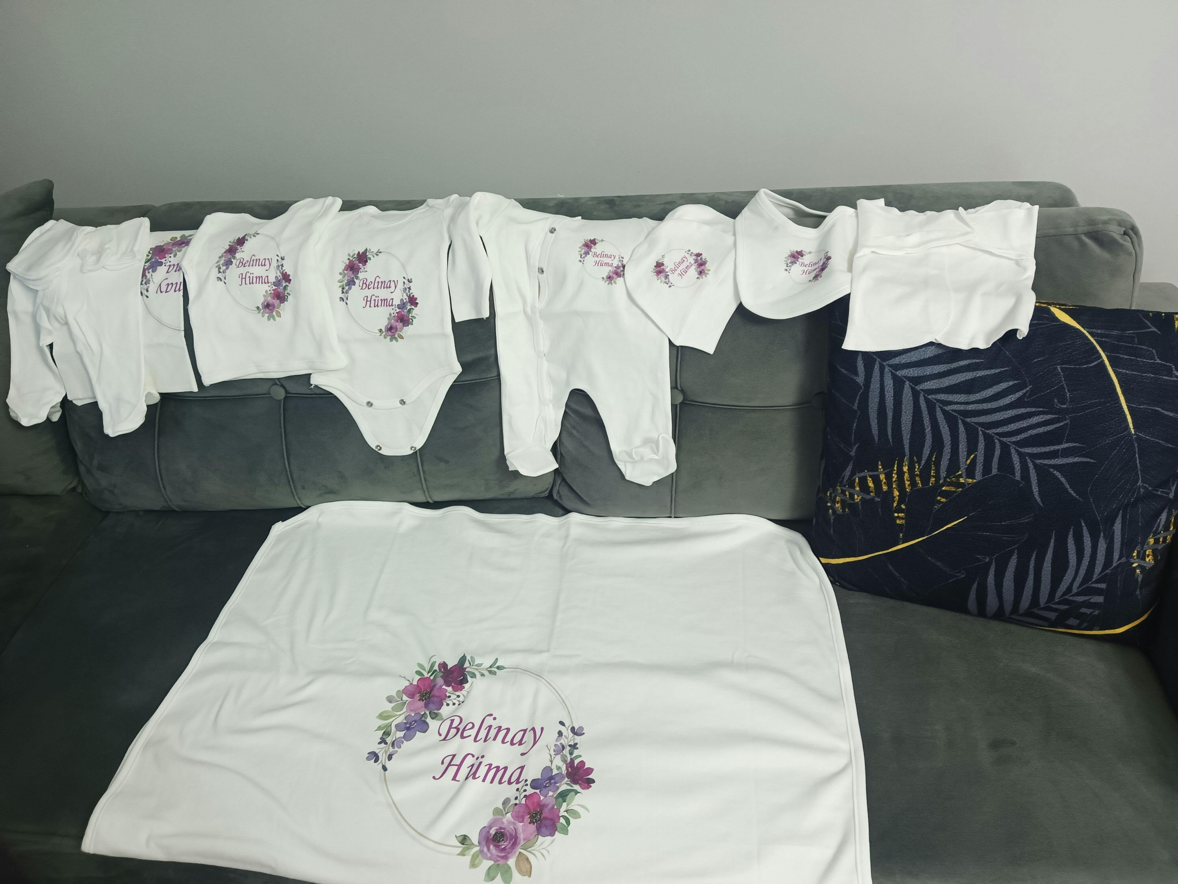 Bebekleriniz için özel olarak tasarlanan %100 pamuklu ve organik baskılı hastane çıkışı setimiz, yeni doğan bebeklerin hassas cildine uygun şekilde özenle hazırlanmıştır. Bu set, bebeğinizin ilk günlerinden itibaren kullanabileceğiniz, dört mevsime uygun, yüksek kaliteli parçalar içermektedir. Bebeğinizin ismine özel tasarlanmış hastane çıkışı ürünleri, hem sağlıklı hem de şık bir başlangıç sunar. Ayrıca, bu set, yeni doğan bebekler için anlamlı ve unutulmaz bir hediye seçeneğidir.